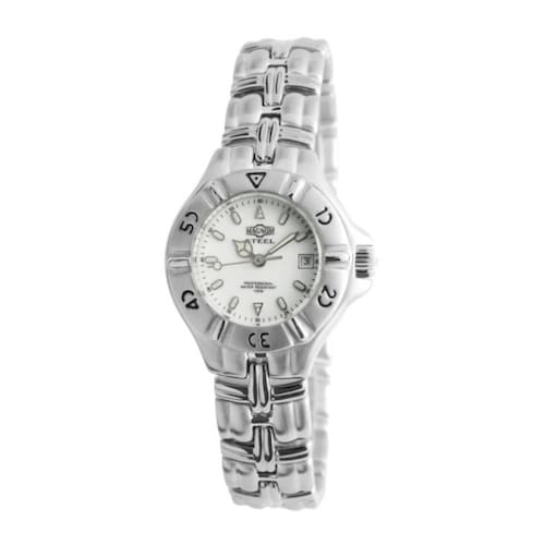 Relógio Magnum Feminino Ref: Ms38056q Vintage Prateado DESCRIÇÃO DO PRODUTO: Caixa de Aço Inoxidável Pulseira de Aço Inoxidável Fundo Rosqueado Vidro: Cristal Mineral Resistência à água: 10 Atm Diâmetro / Largura da Caixa: 28.00 MM Funções: Analógico, Calendário Alimentação do Maquinário: Bateria Mostrador Branco Estilo Vintage 2 Anos de Marca: Não Informado Ean: 7891511011790