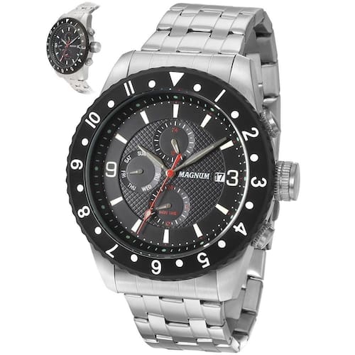 Funções: Analógico, Multifunção (Calendário Semanal, Dual Time e Horário em 24h), Calendário