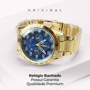 Relogio masculino aço banhado + cordão grosso + pulseira casual qualidade premium social fundo azul Não perca a chance de adicionar um toque de elegância ao seu visual com este conjunto de acessórios masculinos Este relógio dourado à prova d'água, feito de aço inoxidável banhado a ouro 18k, combina funcionalidade e estilo com perfeição. Além disso, o cordão grumet em aço banhado 18k e a pulseira grumet grossa também garantem durabilidade e sofisticação ao seu look. Complemente o conjunto com o pingente em forma de cruz para demonstrar sua fé de maneira elegante. Ideal para presentear alguém especial neste final de ano, esses acessórios de qualidade são perfeitos para qualquer ocasião Marca: Não Informado
