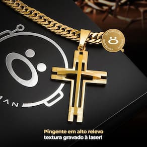 Características do Pingente: - Material: Aço Inoxidável Banhado a Ouro 18k - Design: Pingente Grande em Forma de Cruz