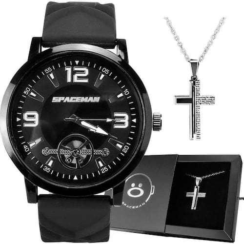 Relogio Masculino Aço Inox + Caixa Pingente Cruz Social Silicone Ajustavel Casual Cordao Relogio Kit Exclusivo! Relógio Orizom Spaceman + Colar Cruz com Oração Pai Nosso Destaque-se com estilo e elegância com este conjunto exclusivo! Este kit inclui um relógio analógico preto da renomada marca Orizom Spaceman, com fundo preto e pulseira de silicone, além de um elegante colar prata de aço inoxidável, com um pingente de cruz acompanhado da poderosa oração Pai Nosso.