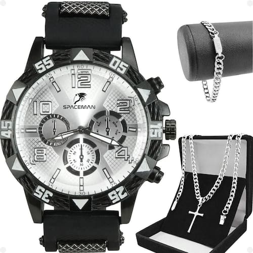 Kit de Acessórios Masculinos Orizom Spaceman - Relógio Analógico e Conjunto de Joias Banhadas!
