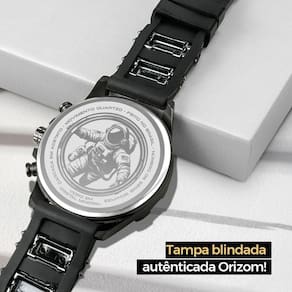 - Tampa: Blindada com arte em forma de astronauta Orizom Spaceman e detalhes de autenticidade
