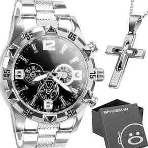 Relógio Masculino Aço Inox Prata + Caixa Casual Grande Presente Social Pesado Kit Exclusivo de Acessórios Elegantes - Orizom Spaceman