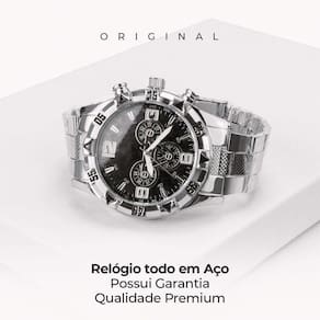 Relógio Analógico Prata - À Prova D'água e em Aço Inox Adquira agora um toque de sofisticação com nosso relógio analógico prata, destacado por um fundo preto elegante. Seu design à prova d'água garante durabilidade e funcionalidade, enquanto o material em aço inox confere resistência e estilo.