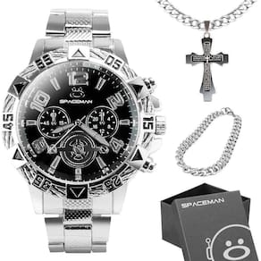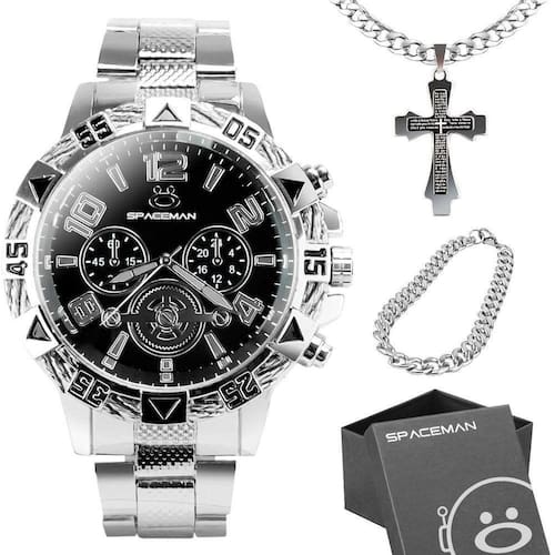 Relogio Masculino Aço Inox Prata + Caixa + Pulseira Analogico Casual Social Presente Preto Kit Relógio Orizom Spaceman Aço Inox + Cordão + Pulseira Pai Nosso!Adicione um toque de elegância ao seu visual diário com o Relógio Analógico Masculino Prata Orizom Spaceman. Feito em aço inoxidável de alta qualidade, este relógio é ideal para os homens que buscam sofisticação e estilo.Complemente o relógio com a corrente em aço inoxidável de 60cm, perfeita para adicionar um toque moderno e sofisticado ao seu estilo. E para transmitir um significado especial e espiritualidade, o kit inclui um pingente grande em forma de crucifixo com Pai Nosso gravado a laser de 4cm.Além disso, a pulseira em aço inoxidável prata estilo grumet de 21cm oferece um acessório adicional para realçar o visual e completar o conjunto com um toque de estilo.E para garantir proteção e elegância ao guardar ou presentear este kit exclusivo, a caixa premium Orizom Spaceman é fornecida.Este kit é ideal para presentear a si mesmo ou aquela pessoa especial, oferecendo uma combinação perfeita de estilo, qualidade e significado. Não perca a oportunidade de adquirir este presente memorável para diversas ocasiões! Ean: 7898977313826