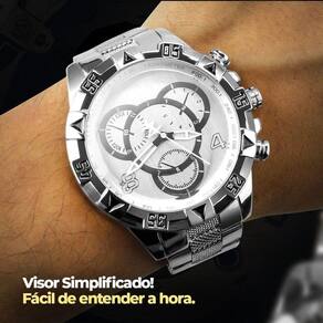 Este relógio é mais do que um marcador de tempo; é uma expressão de estilo duradouro. Sua resistência à água, aliada aos materiais de alta qualidade, fazem dele uma escolha versátil para qualquer ocasião. Ideal para presentear, este relógio prata é um presente atemporal que combina funcionalidade e elegância.