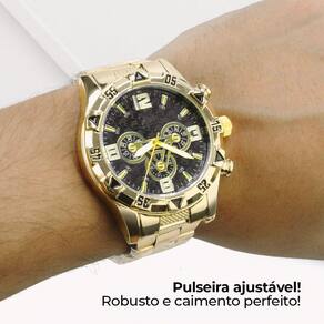 Adicione um toque de sofisticação e elegância ao seu visual com este relógio masculino prateado, com detalhes dourados. Feito de aço inoxidável banhado a ouro 18k, este relógio durável é resistente à água, perfeito para uso diário e atividades aquáticas leves. Seu design versátil e elegante o torna ideal para qualquer ocasião.
