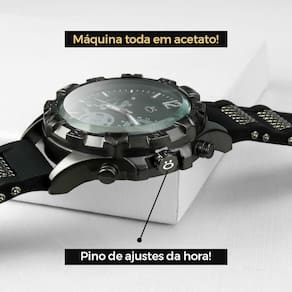 Relógio Masculino Orizom Spaceman - Tipo: Analógico - Modelo: Spaceman - Qualidade: Premium - Material: Maquinário em aço inoxidável todo preto com pintura eletrostática black piano - Formato: Redondo - Mostrador: Totalmente preto, com detalhes internos como números e desenhos que podem variar conforme a montagem no ato da compra - Pulseira: Silicone preto ajustável, com qualquer dimensão de pulso - Tampa: Blindada com arte exclusiva da oração completa do Pai Nosso, conferindo autenticidade e simbolismo ao relógio