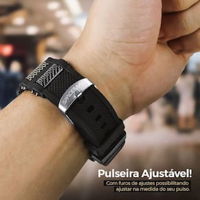 Pulseira em Silicone com Oração - Material: Silicone preto com placa em aço inoxidável preto - Detalhe: Oração do Pai Nosso gravada a laser na placa, adicionando um toque espiritual ao acessório - Comprimento: Ajustável, proporcionando conforto e praticidade para qualquer tamanho de pulso