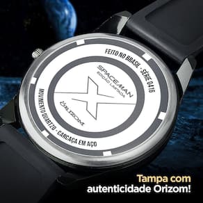 O Relógio Masculino Orizom Spaceman X é analógico, possui um formato redondo e tem cerca de 4,5 cm de diâmetro de caixa. A cor preta e o mostrador preto conferem um visual moderno, enquanto o material todo em aço inoxidável garante durabilidade. A pulseira ajustável de silicone preta se adapta a qualquer tamanho de pulso, proporcionando conforto e estilo.