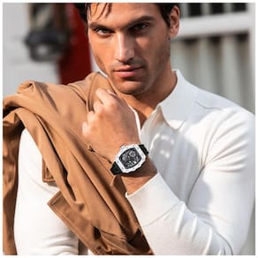 Cristal de safira e aço inoxidável 316L Revestimento de alta tecnologia banhado a íon IP de nível aeroespacial com tecnologia de corte CNC de ultraprecisão, quatro vezes o processo de esmeril de moagem a frio, para maximizar o atrito e a resistência à corrosão. Cristal de safira de alta transmissão de luz, tratamento antirreflexo em ambos os lados. Dureza Mohs 9, tornando o mais forte do que qualquer outro material natural, exceto diamantes. Alta busca por relógios masculinos, constantemente ultrapassando os limites da tecnologia e da estética.
