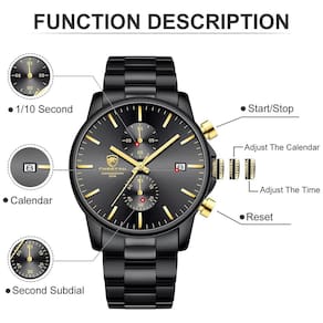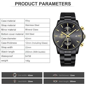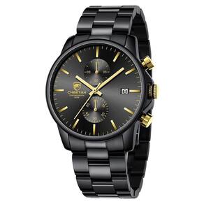 Características: Marca: Cheetah Modelo: 1604 Categoria: Analógico Estilo: Fashion e Casual Movimento: Quartzo Cronógrafo: Ponteiros funcionais Calendário: Sim Diâmetro da caixa visor : 42 mm Espessura da caixa visor : 12 mm Tamanho da pulseira: 250 mm Incluindo o fecho Largura da pulseira: 22 mm Tipo de fecho: Borboleta Material do Visor: Vidro Mineral Material da caixa: Metal Material da pulseira: Aço inoxidável Peso liquido: Cerca de 146g Alimentação: Bateria Resistente à Água: 5ATM Garantia: 03 Meses Conteúdo da Embalagem: - Relógio - Manual de instruções em inglês - Certificado internacional de originalidade