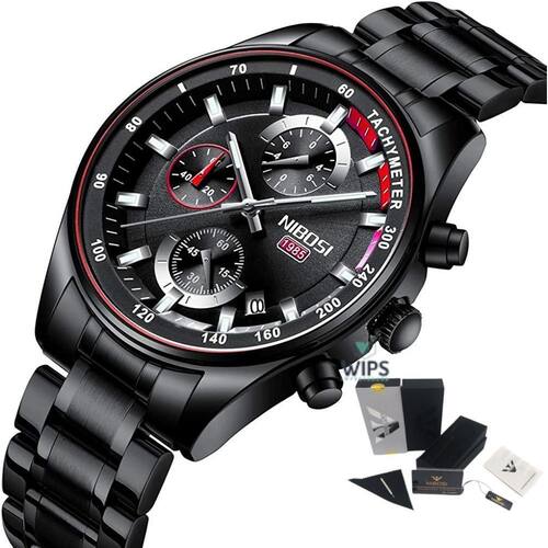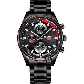 Relógio Masculino Analógico Cronógrafo Funcional Nibosi 2375 Cor: Preto Características: Marca: Nibosi Modelo: 2375 Categoria: Analógico Estilo: Fashion e Casual Movimento: Quartzo Cronógrafo: Ponteiros funcionais Calendário: Sim Diâmetro da caixa visor : 44 mm Espessura da caixa visor : 14 mm Tamanho da pulseira: 232 mm Largura da pulseira: 20 mm Tipo de fecho: Dobrável com trava Ponteiros luminosos: sim Material do Visor: Cristal hardlex Material da caixa: Aço inoxidável Material da pulseira: Aço inoxidável Peso liquido: 135g Alimentação: Bateria Resistente à Água: 3BAR/3ATM/30M - Respingos: Sim - Chuva: Sim - Lavar Louça: Sim - Natação: Não - Mergulho: Não : 03 Meses Conteúdo da Embalagem: - Relógio - Manual de instruções em inglês - Chave para regular a pulseira do relógio - Certificado internacional de originalidade - Flanela para limpar o relógio Marca: Não Informado