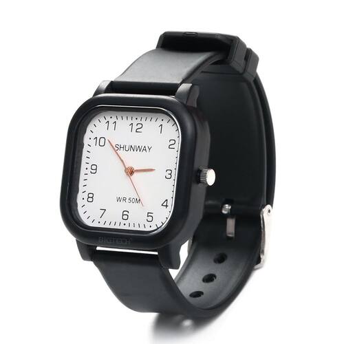 Relógio S581-01-1 O Relógio Analógico Preto Clássico é a escolha perfeita para quem busca um acessório elegante, moderno e versátil para o dia a dia. Seu design minimalista com mostrador branco e caixa quadrada proporciona um visual sofisticado que combina com diferentes estilos.\nEquipado com marcação de números grandes e ponteiros de fácil visualização, permite acompanhar as horas com praticidade e precisão.\nA pulseira em silicone confortável e resistente garante um ótimo ajuste ao pulso, sendo ideal para uso diário, trabalho ou momentos de lazer.\nO modelo também possui resistência à água de até 50 metros (WR50M), oferecendo mais segurança e durabilidade.