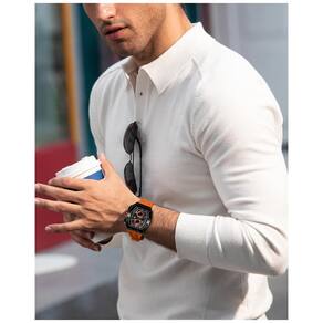 DESIGN ERGONÔMICO DE PONTE DUPLA O relógio TSAR BOMBA nasceu no laboratório de força sino alemão. Com base na mecânica mecânica, materiais inovadores e fabricação de precisão, integra a estética oriental e se esforça para fazer avanços contínuos em tecnologia. Adota um design ergonômico de ponte dupla. Cada caixa passou por 202 processos para tornar o relógio mais adequado ao pulso humano, aprimorando muito a experiência de combinação. Um banquete visual de luxo simples que traz à tona o melhor do estilo masculino. Equipado com uma superfície de espelho de safira de revestimento anti reflexo incolor de alta qualidade, resistente ao desgaste, altamente translúcido. A safira tem um nível de dureza Mohs de 9 devido ao processo de moagem a frio quatro vezes mais caro que o processo tradicional de dobra a quente, tornando a mais forte do que qualquer outro material natural, exceto o diamante. Sua dureza é igualada apenas pelo diamante e pelo diamante brilhante. O movimento japonês fornece tempo preciso. IMPERMEÁVEL 5ATM A LEVEL SUPER LUMINOSO À prova dágua até 50 metros, o relógio pode ser para água fria, chuva e natação. Resistência à água fácil de manusear em todas as situações da vida, sem necessidade de enfrentar o ambiente diário da água com cuidado. A Level Super luminoso, permitindo que você leia o tempo no escuro. Cheio de energia brilhante, pode brilhar por até 4 horas. A pulseira de silicone de de alta qualidade é resistente ao suor, umidade e corrosão e confortável de usar sem qualquer reação alérgica.