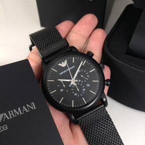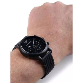 Modelo : AR1968 Material da Caixa e da pulseira : Aço inoxidável 3 Mostradores Internos Vidro : Cristal Mineral Cor do mostrador : Preto Resistência a Água : 50m ( pressão 0,5 bar ) Diâmetro da Caixa : 46 milímetros Espessura da Caixa: 22 milímetros Mecanismo : Quartzo de altíssima Qualidade