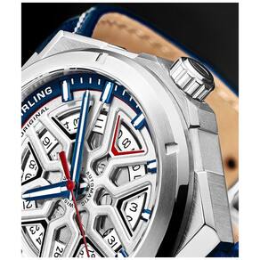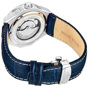 ESTILO EDGY looks atraentes são impressionantes e funcionais, aprimoram o vestido e os looks casuais com um toque que é o complemento perfeito para roupas de negócios e de final de semana. FAIXA DE COURO GENUINUÍNA Terminada com uma luxuosa pulseira de couro azul em relevo de jacaré de com costuras contrastantes, a 379 combina um estilo nítido com um conforto inacreditável. MOVIMENTO AUTOMÁTICO SUÍÇO Mecanismo automático de corda automática de alta qualidade de fabricação suíça 36 horas de reserva de energia totalmente montado e produzido na Suíça Claro 888 SEM BATERIAS NECESSÁRIAS O movimento mecânico automático de corda automática utiliza seus movimentos naturais para manter o relógio funcionando por enquanto contanto que você o use.