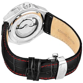 ESTILO EDGY looks atraentes são impressionantes e funcionais, aprimoram o vestido e os looks casuais com um toque que é o complemento perfeito para roupas de negócios e de final de semana. FAIXA DE COURO GENUINUÍNA Terminada com uma luxuosa pulseira de couro azul em relevo de jacaré de com costuras contrastantes, a 379 combina um estilo nítido com um conforto inacreditável. MOVIMENTO AUTOMÁTICO SUÍÇO Mecanismo automático de corda automática de alta qualidade de fabricação suíça 36 horas de reserva de energia totalmente montado e produzido na Suíça Claro 888 SEM BATERIAS NECESSÁRIAS O movimento mecânico automático de corda automática utiliza seus movimentos naturais para manter o relógio funcionando por enquanto contanto que você o use.