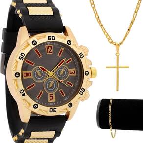 Relógio Masculino Banhado A Ouro Barato + Pulseira