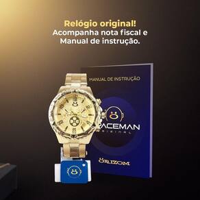 Relogio Masculino Banhado Aço + Pulseira + Cordão Crucifixo Relógio Analógico Dourado Orizom Spaceman Agora você pode ter o relógio analógico dourado da Orizom Spaceman, banhado e confeccionado em aço inox. Desfrute de um design prático que facilita a visualização das horas no dia a dia. Além disso, o relógio é resistente à água, proporcionando confiança e estilo em todas as ocasiões. Por favor, lembre-se de evitar contato excessivo com água para garantir a durabilidade do relógio. Observe que pequenas variações podem ocorrer conforme a disponibilidade em estoque.