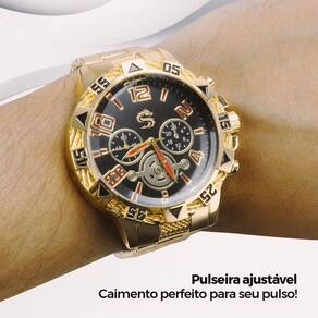 Aproveite o Kit Orizom Spaceman "Dragon" - uma coleção exclusiva que combina estilo, elegância e um toque de mistério para presentear alguém especial. Feito em aço inoxidável banhado a ouro, este conjunto de alta qualidade é perfeito para surpreender em qualquer ocasião.O destaque deste kit é o relógio masculino analógico Orizom Spaceman "Dragon", com maquinário e pulseira banhados a ouro, criando um acessório luxuoso e sofisticado. Seu mostrador preto e tampa blindada com desenho exclusivo de dragão acrescentam personalidade e elegância ao visual.Além do relógio, a corrente de aço inoxidável banhado grumet de aproximadamente 60cm de comprimento complementa perfeitamente o conjunto, adicionando glamour a qualquer look masculino. Também incluso, um pingente pequeno em aço inoxidável banhado em formato de cruz, perfeito para adicionar um toque de espiritualidade ao kit.Para finalizar, a pulseira de aço inoxidável banhado grumet de aproximadamente 25cm de comprimento proporciona uma aparência coesa e elegante ao conjunto, tornando-o completo.Surpreenda alguém especial hoje com este kit exclusivo da Orizom. Perfeito para presentear em aniversários, Natal ou qualquer ocasião especial, este conjunto excepcional certamente será apreciado por qualquer homem que aprecie estilo e qualidade. Aproveite esta oportunidade e adquira já o seu!
