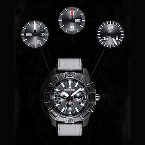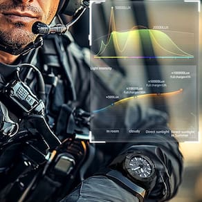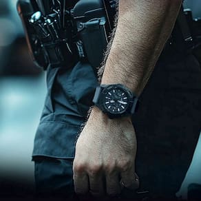 [Material e Design] Com 15,6 mm de espessura e largura de banda de 20 a 24 mm, o design robusto e arrojado é complementado por uma resistente pulseira de silicone, que garante conforto absoluto e durabilidade.