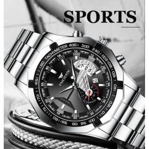 Relógio masculino bracelete aço inox fundo preto fngeen Relógio masculino aço inox classic design Estilo e elegância traduzidos em um acessório masculino singular.O modelo da fngeen com bracelete em inox é um relógio, que além de clássico e elegante, traz um toque de puro bom gosto com seu design e sofisticação. É a perfeita combinação nas horas mais especiais, que de agora em diante serão marcadas e conferidas com muito bom gosto pelo seu fngeen inox classic design. Comprimento pulseira : 24 cm Largura pulseira : 2,0cmTamanho da caixa mostrador : 4,4 cmEspessura da caixa mostrador : 1 cmMaterial da pulseira : aço inoxidávelVidro: hardlexModelo : analógicoPonteiro pequeno no interior do relógio: decorativos, fixos.Calendário: funcionalPeso: 120gResistente à água 3atm respingos, lavar mão, chuva . Relógio moderno, estiloso e luxuoso Produto não acompanha estojo/caixa.Embalado em saco próprio do fabricante.