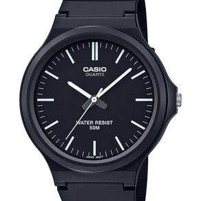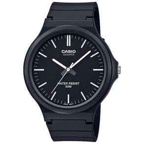 Relógio Masculino Casio Classico Mw-240-1EvdfO Relógio é um dos acessórios mais presentes em todas as fases da nossa vida, mesmo com inúmeros dispositivos modernos que mostram as horas, o clássico relógio para pulso não perdeu seu charme e é uma ótima opção para complementar o visual. O Relógio Masculino Casio Classico Mw-240-1Evdf é perfeito para uso pessoal ou para presentear alguém especial em uma data comemorativa, sendo um presente único, de ótimo gosto, elegância e muita praticidade.Produzido com materiais resistentes e de qualidade, a peça reúne sofisticação e estilo em um único item. A escolha perfeita para homens elegantes, que gostam de ter um acessório que complemente o look em qualquer ocasião. Características:Marca: Casio;Modelo: MW-240-1EVDF;Gênero: Masculino;Movimento: Quartzo;Material da Caixa: Resina;Cor da Caixa: Preto;Formato da Caixa: Redondo; Display/mostrador: Analógico;Ponteiros: Branco;Possui Calendário: Sim;Material da Pulseira: Borracha;Cor da Pulseira: Preto;Tipo de Vidro: Acrílico;Resistência à Água: 5 ATM (50 metros);Permite Lavar as Mãos: Sim;Permite Respingos de Chuva: Sim;Permite Entrar na Piscina: Não;Permite Entrar No Mar: Não;Permite Nadar Com o Relógio: Não;Permite Usar No Banho Quente: Não;Diâmetro Da Caixa Sem Coroa Aprox.: 42mm;Diâmetro Da Caixa Com Coroa Aprox.: 44mm;Espessura da Caixa Aprox.: 9mm;Peso Aprox.: 35g;