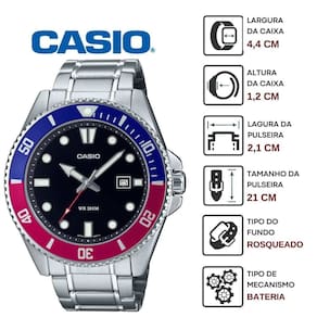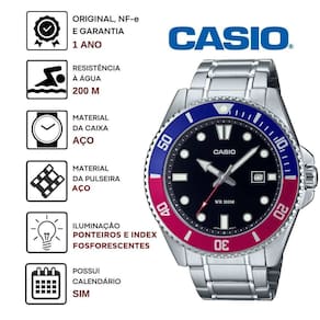 Após o lançamento de mais um produto inovador e de melhor custo-benefício do mercado, a exímia marca de relógios mundial casio, novamente reforça o seu princípio de criatividade e contribuição. Com o Casio Duro, relógio de mergulho analógico com uma qualidade inigualável. Apesar de seu baixo custo, ele ratifica seu valor intrínseco com aprovação mundial, sendo visto utilizado várias vezes por ninguém menos que o bilionário e fundador da Microsoft, Bill Gates. ·Até 200 metros resistente à água para oferecer excelente confiabilidade ·Anéis giratórios