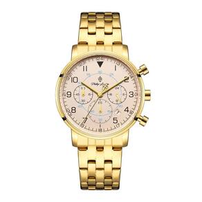 O Churchill é uma das peças mais sofisticadas da marca, destacando-se por suas tendências e rica história. Inspirado em Winston Churchill, o relógio se assemelha a um utilizado pelo ex-primeiro-ministro que era um grande apreciador deste tipo de acessório. Equipado com uma máquina Japonesa, pulseira de aço, caixa dourada e mostrador em tom bege, este relógio apresenta a praticidade do cronógrafo e calendário, formando uma fusão refinada entre design e funcionalidade. Visando assegurar sua completa satisfação e tranquilidade, estendemos a você uma garantia de um ano para este produto, comprometendo-nos a oferecer uma experiência de uso excepcionalmente segura e confiável.