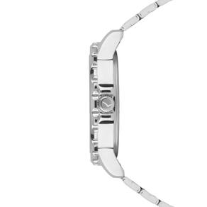 Descubra a força do lançamento de militar. Relógio de aro com marcação de minutos e mostrador com numeração completa, com pulseira em 3 links e banho prateado e mostrador na cor verde.