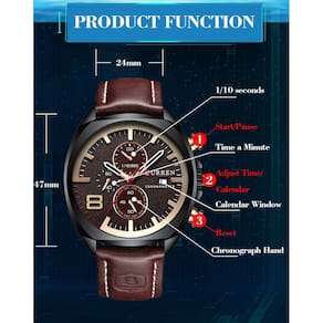 Especificação: Diâmetro Do Mostrador: 47 Mm A Espessura Da Caixa: 14 Mm Comprimento Do Relógio: 240 Mm Largura De Banda: 24 Mm Resistência à Água: 30M Característica: Movimento: Módulo De Tempo De Movimento De Quartzo (Feito No Japão) Material do Espelho: Hardlex De Movimentação De 12 Meses Componentes Incluídos: 1 × Relógio Cuidado: Relógio Multifuncional. Todo mundo está trabalhando. Este Relógio Tem Uma Função De Cronometragem. O Relógio 3Bar À Prova D'Água Pode Lavar As Mãos, Não Pode Ser Água Quente E Não Pode Tomar Banho, Tomar Banho, Nadar, Etc.