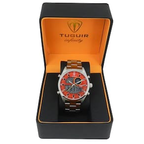 Marca: Tuguir Categoria: AnaDigi Analógico: Sim (1 Horário) Ponteiros Fluorescentes: Não Digital: Sim (1 Horário) Calendário: Sim Despertador: Sim Mostra o Dia da Semana: Sim Mostra o Dia do Mês: Sim Cronômetro: Sim Luz: Sim Cor da Iluminação: Verde Resistente à Água: 5 ATM - Respingos: Sim - Chuva: Sim - Lavar Carro: Sim - Lavar Louça: Sim - Natação: Sim - Mergulho: Não Característica do Vidro: Cristal Mineral Tipo de Fecho: Dobrável com Botão Cor da Caixa: Prata Material da Caixa: Aço Formato da Caixa: Redondo Diâmetro da Caixa: 43,00 (mm) Espessura da Caixa: 14,50 (mm) Cor da Pulseira: Prata Material da Pulseira: Aço Largura da Pulseira: 20,00 (mm) Comprimento Máximo da Pulseira: 270,00 (mm) Alimentação: Bateria Interna Peso Líquido: 0,135 Kg Modelo: Infinity GCS-1265 Cor Predominante: Prata Cor Diferencial: Vermelho Garantia: 12 Meses