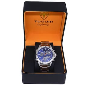 Marca: Tuguir Categoria: AnaDigi Analógico: Sim (1 Horário) Ponteiros Fluorescentes: Não Digital: Sim (1 Horário) Calendário: Sim Despertador: Sim Mostra o Dia da Semana: Sim Mostra o Dia do Mês: Sim Cronômetro: Sim Luz: Sim Cor da Iluminação: Verde Resistente à Água: 5 ATM - Respingos: Sim - Chuva: Sim - Lavar Carro: Sim - Lavar Louça: Sim - Natação: Sim - Mergulho: Não Característica do Vidro: Cristal Mineral Tipo de Fecho: Dobrável com Botão Cor da Caixa: Prata Material da Caixa: Aço Formato da Caixa: Redondo Diâmetro da Caixa: 43,00 (mm) Espessura da Caixa: 14,00 (mm) Cor da Pulseira: Prata Material da Pulseira: Aço Largura da Pulseira: 19,50 (mm) Comprimento Máximo da Pulseira: 270,00 (mm) Alimentação: Bateria Interna Peso Líquido: 0,130 Kg Modelo: GCS-1269 Cor Predominante: Prata Cor Diferencial: Azul Garantia: 12 Meses
