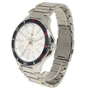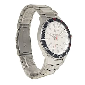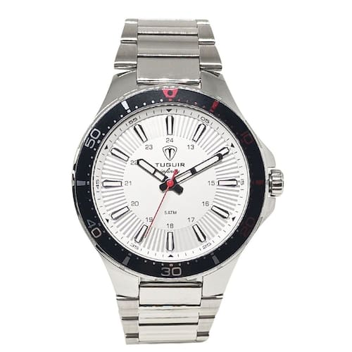 Relógio Masculino de Aço Tuguir Analógico 23-2238 Prata e Branco e VermelhoMarca: Tuguir Categoria: Analógico Analógico: Sim (1 Horário) Ponteiros Fluorescentes: Sim Digital: Não Luz: SelecioneResistente à Água: 5 ATM (Pode ser utilizado para nadar no raso, por pouco tempo submerso) - Respingos: Sim - Chuva: Sim - Lavar Carro: Sim - Lavar Louça: Sim - Natação: Sim - Mergulho: Não Característica do Vidro: Cristal Mineral Tipo de Fecho: Dobrável com Botão Cor da Caixa: Prata Material da Caixa: Aço Formato da Caixa: Redondo Diâmetro da Caixa: 46,00 (mm) Espessura da Caixa: 9,00 (mm) Cor da Pulseira: Prata Material da Pulseira: Aço Largura da Pulseira: 21,00 (mm) Comprimento Máximo da Pulseira: 220,00 (mm) Alimentação: Bateria Interna Peso Líquido: 0,120 Kg Modelo: 23-2238 Cor Predominante: Prata Cor Diferencial: Branco e Vermelho Garantia: 12 MesesConteúdo da Embalagem: 01 Relógio 01 Embalagem 01 Termo de Garantia
