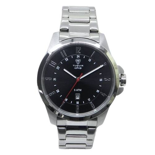Relógio Masculino de Aço Tuguir Analógico Infinity 6117H Prata e PretoMarca: Tuguir Categoria: Analógico Analógico: Sim (1 Horário) Ponteiros Fluorescentes: Não Digital: Não Luz: NãoResistente à Água: 5 ATM (Pode ser utilizado para nadar no raso, por pouco tempo submerso) - Respingos: Sim - Chuva: Sim - Lavar Carro: Sim - Lavar Louça: Sim - Natação: Sim - Mergulho: Não Característica do Vidro: Cristal Mineral Tipo de Fecho: Dobrável com Botão Cor da Caixa: Prata Material da Caixa: Aço Formato da Caixa: Redondo Diâmetro da Caixa: 45,00 (mm) Espessura da Caixa: 10,00 (mm) Cor da Pulseira: Prata Material da Pulseira: Aço Largura da Pulseira: 20,00 (mm) Comprimento Máximo da Pulseira: 280,00 (mm) Alimentação: Bateria Interna Peso Líquido: 0,120 Kg Modelo: Infinity 6117H Cor Predominante: Prata Cor Diferencial: Preto Garantia: 12 MesesConteúdo da Embalagem: 01 Relógio 01 Embalagem 01 Termo de Garantia
