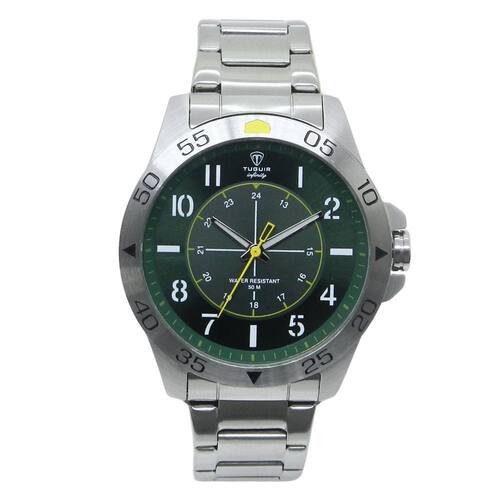 Relógio Masculino de Aço Tuguir Analógico Infinity 9167F Prata e Verde e AmareloMarca: Tuguir Categoria: Analógico Analógico: Sim (1 Horário) Ponteiros Fluorescentes: Não Digital: Não Luz: NãoResistente à Água: 5 ATM (Pode ser utilizado para nadar no raso, por pouco tempo submerso) - Respingos: Sim - Chuva: Sim - Lavar Carro: Sim - Lavar Louça: Sim - Natação: Sim - Mergulho: Não Característica do Vidro: Cristal Mineral Tipo de Fecho: Dobrável com Botão Cor da Caixa: Prata Material da Caixa: Aço Formato da Caixa: Redondo Diâmetro da Caixa: 45,00 (mm) Espessura da Caixa: 10,00 (mm) Cor da Pulseira: Prata Material da Pulseira: Aço Largura da Pulseira: 20,00 (mm) Comprimento Máximo da Pulseira: 280,00 (mm) Alimentação: Bateria Interna Peso Líquido: 0,120 Kg Modelo: Infinity 9167F Cor Predominante: Prata Cor Diferencial: Verde e Amarelo Garantia: 12 MesesConteúdo da Embalagem: 01 Relógio 01 Embalagem 01 Termo de Garantia