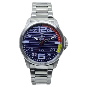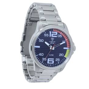 Marca: Tuguir Categoria: Analógico Analógico: Sim (1 Horário) Ponteiros Fluorescentes: Não Digital: Não Luz: Não Resistente à Água: 5 ATM - Respingos: Sim - Chuva: Sim - Lavar Carro: Sim - Lavar Louça: Sim - Natação: Sim - Mergulho: Não Característica do Vidro: Cristal Mineral Tipo de Fecho: Dobrável com Botão Cor da Caixa: Prata Material da Caixa: Aço Formato da Caixa: Redondo Diâmetro da Caixa: 43,00 (mm) Espessura da Caixa: 9,00 (mm) Cor da Pulseira: Prata Material da Pulseira: Aço Largura da Pulseira: 20,00 (mm) Comprimento Máximo da Pulseira: 280,00 (mm) Alimentação: Bateria Interna Peso Líquido: 0,125 Kg Modelo: Infinity 9169A Cor Predominante: Prata Cor Diferencial: Azul e Laranja Garantia: 12 Meses