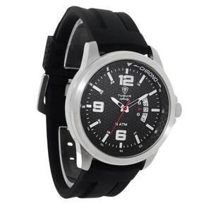 Marca: Tuguir Categoria: Analógico Analógico: Sim (1 Horário) Ponteiros Fluorescentes: Não Digital: Não Luz: Não Resistente à Água: 5 ATM - Respingos: Sim - Chuva: Sim - Lavar Carro: Sim - Lavar Louça: Sim - Natação: Sim - Mergulho: Não Característica do Vidro: Cristal Mineral Tipo de Fecho: Fivela Cor da Caixa: Dourado Material da Caixa: Aço Formato da Caixa: Redondo Diâmetro da Caixa: 43,00 (mm) Espessura da Caixa: 10,50 (mm) Cor da Pulseira: Preto Material da Pulseira: Silicone Largura da Pulseira: 20,50 (mm) Comprimento Máximo da Pulseira: 260,00 (mm) Alimentação: Bateria Interna Peso Líquido: 0,080 Kg Modelo: Infinity 9169F Cor Predominante: Prata Cor Diferencial: Preto Garantia: 12 Meses