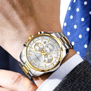 Este relógio masculino combina elegância e durabilidade, apresentando uma construção robusta em aço inoxidável e um movimento de quartzo de alta precisão. Com resistência à água de 3 ATM, ele é ideal para o uso diário, suportando respingos e chuva. Seu design clássico e sofisticado faz dele o acessório perfeito para qualquer ocasião, garantindo estilo e funcionalidade em um só produto.