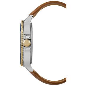 A pulseira ajustável de couro de se ajusta à circunferência do pulso de até 8 polegadas Mostrador azul com janela de data às 3 horas algarismos arábicos parciais Caixa de latão de em tom de prata e azul com cristal de vidro mineral Indiglo light up watch dial mãos luminosas Resistente à água até 50 m 165 pés em geral, adequado para curtos períodos de natação recreativa, mas não para mergulho ou snorkeling Marca: Não Informado