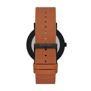 Skagen Relógio masculino Kuppel de dois ponteiros com pulseira de couro ou malha de aço inoxidável, Preto/Marrom, Kuppel