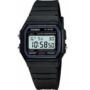 Digital Pulseira de Borracha Caixa de Resina Walter Resistant - Resistente a salpicos de agua 1 Alarme Bip de Hora em Hora Formato 12/24 hs Cronógrafo progressivo até 59:59:99'' Calendário - Dia, Dia da Semana e Mês F-91W-1DG - Preto Largura caixa 3,4 cm Espessura 0,8 cm Peso 20 gramas