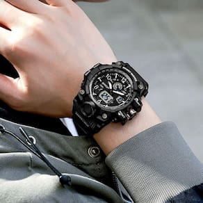 O relógio é resistente a água de 104,05 pés / 50m e pode suportar suor, chuva acidental ou respingos de água. Este relógio é resistente a riscos e proporciona uma sensação suave ao usá-lo, a pulseira é totalmente flexível e se mantém confortável em seu pulso, com largura de 25mm e comprimento de 26cm dá ao relógio uma aparência elegante.