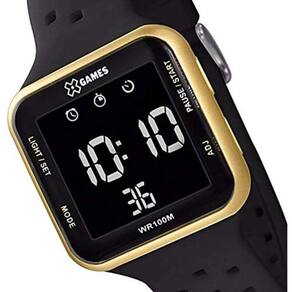 Relógio Masculino Digital Esportivo X-Watch XGPPD093W PXPX Funções: Digital, Iluminação, Calendário, Cronógrafo, Alarme, Timer Resistência à Água: 100m Diâmetro da Caixa: 38 mm x 38 mm Características: com caixa em Resina Dourado e pulseira em Silicone Preta Vidro: Acrílico Fundo Parafusado Alimentação do maquinário: Bateria Mostrador Preto com detalhes em branco e dourado Garantia de 1 Ano Marca: X-WATCH
