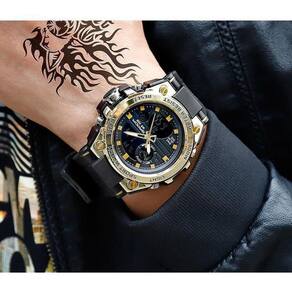 Diâmetro do mostrador: 5,5 cm Material pulseira: silicone Largura da pulseira: 2,3cm Comprimento da pulseira: 24cm Fecho: fivela Formato do mostrador: redondo 3atm à prova d'água (chuva, lavar mãos, respingos, banho, piscina) Não pressionar botões debaixo d'água. Digital 12/24horas, calendário completo, cronômetro, cronógrafo. Led espelho com display luminoso