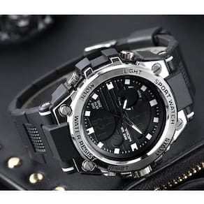 Relógio Masculino Digital Preto Prateado Resistente À Água