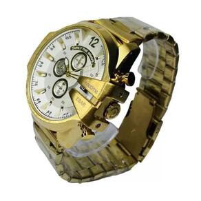 Características Composição do Vidro: Cristal Mineral flame fusion resistente a riscos. Composição da caixa: aço inox Pulseira: Dourado
