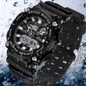 O relógio é resistente a água de 164,04 pés / 50m e pode suportar suor, chuva acidental ou respingos de água. Este relógio é resistente a riscos e proporciona uma sensação suave ao usá-lo, a pulseira é totalmente flexível e se mantém confortável em seu pulso, com largura de 22mm e comprimento de 27cm dá ao relógio uma aparência elegante.